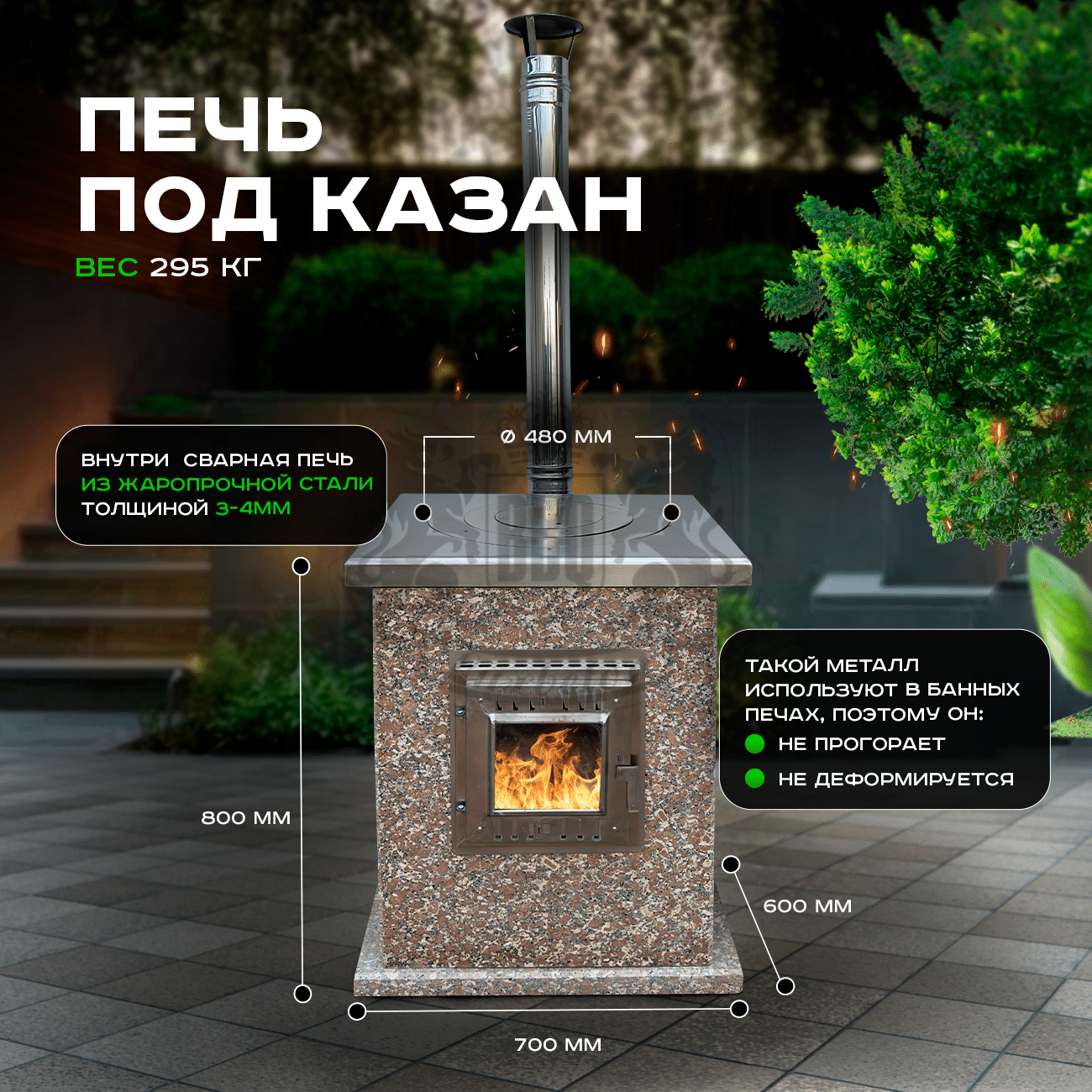 Гранит отличается вековой прочностью, устойчивостью к повреждениям и легкостью в уходе, плюс не абсорбирует запахи и грязь. Нержавеющая сталь AISI 304 не поддается коррозии и выдерживает перепады температур.